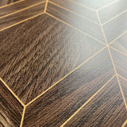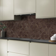 A beautiful combination of classic wood and contemporary geometry, Heritage Walnut is a splashback with a geometric pattern in gold (effect), over a warm timber backdrop. The result is a statement alternative to a tiled splashback with fascinating depth; a beautiful nod to mid-century influences. Transform your kitchen with the new rich natural textures of the Alloy Decor Range.