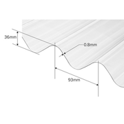 This roofing sheet has a wide corrugated profile of 36/93, with a corrugation width of 93mm and a height of 36mm. This design not only adds to the sheet's aesthetic appeal but also enhances its strength and rigidity. It can be installed at a minimum pitch of 5 degrees and a maximum pitch of 20 degrees, offering flexibility to suit various architectural designs. Moreover, it has a fire rating of B, ensuring a degree of safety in case of a fire incident.